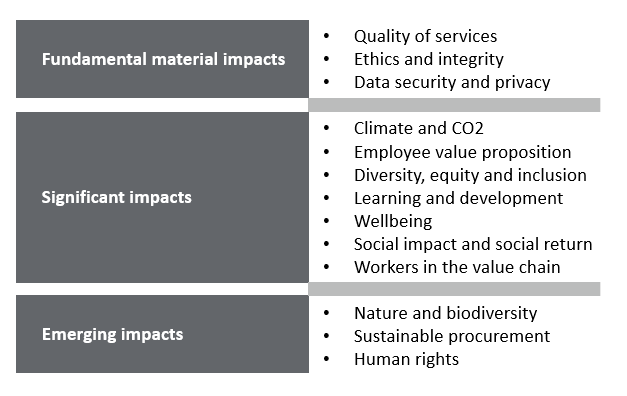 Compared to the previous year, we have added the topic 'Workers in the value chain' to our material sustainability matters. In addition, we have added 'Privacy' to our material material sustainability matter 'Data security'.