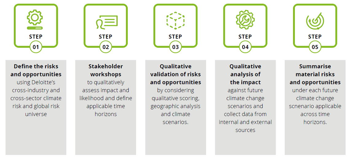 In December 2024, Deloitte NSE published a report describing the climate-related financial disclosures for NSE and its geographies. It contains a comprehensive overview of our global climate ambitions, impacts and the risks that apply to our business. Our assessment of financial risks and opportunities in determining materiality is informed by this publication.